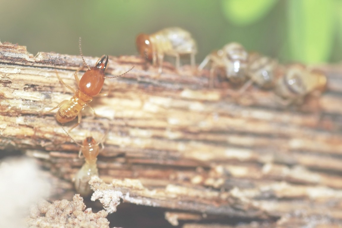 Las termitas son insectos sociales de aspecto blanquecino y que viven en el suelo y comen madera.